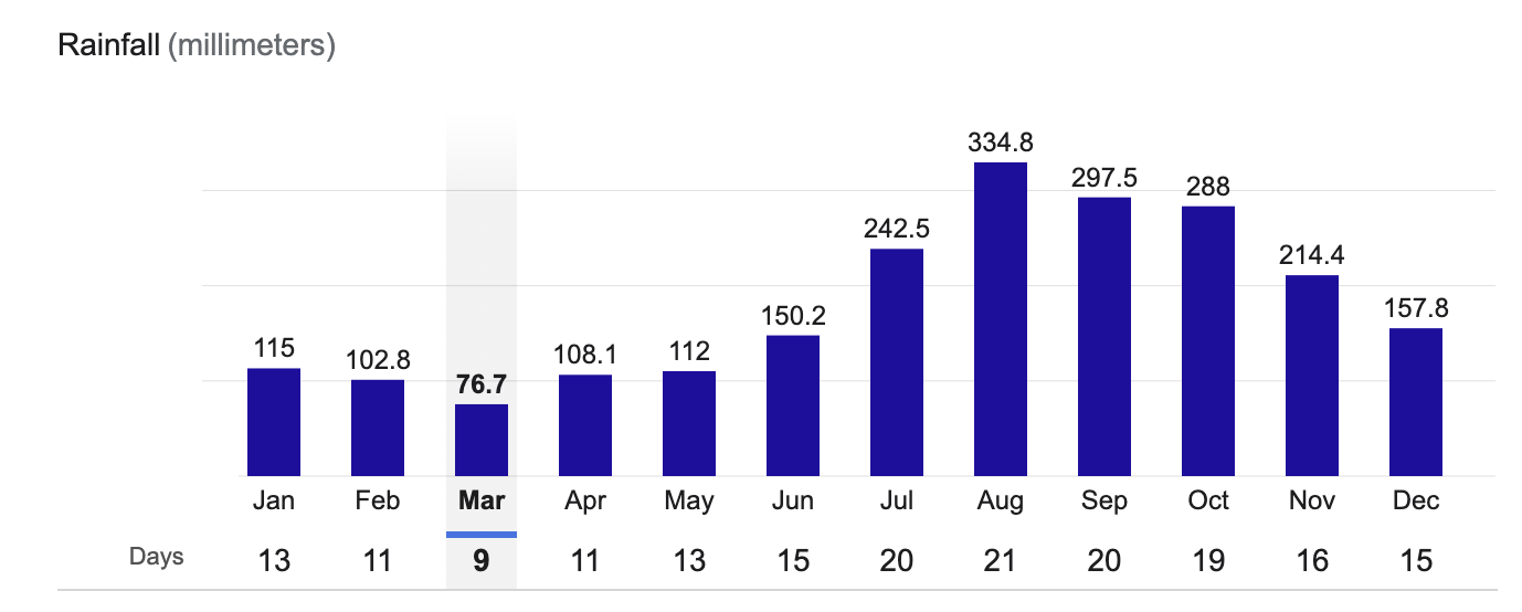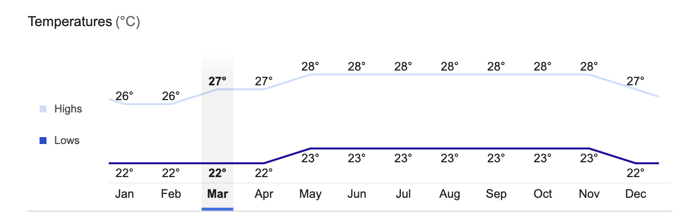 5월 ~ 11월 평균 기온 : 23 ~ 28도